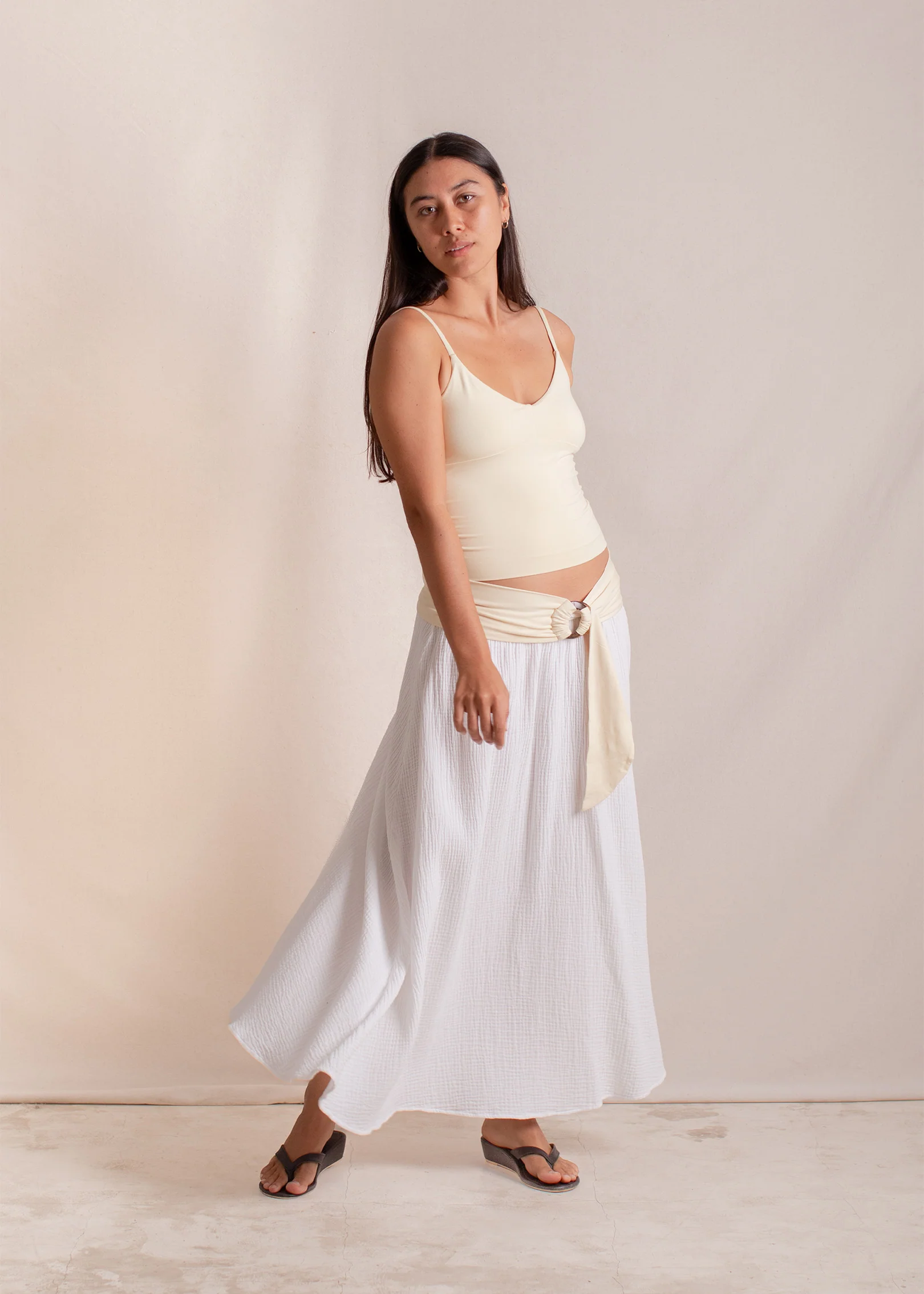 The Bella Belt features two large coconut shell rings on our stretchy Plant Viscose band, bringing a natural, island-inspired touch to this accessories piece. Twist, knot, or loop it to create playful and unique styles that stay in place all day.