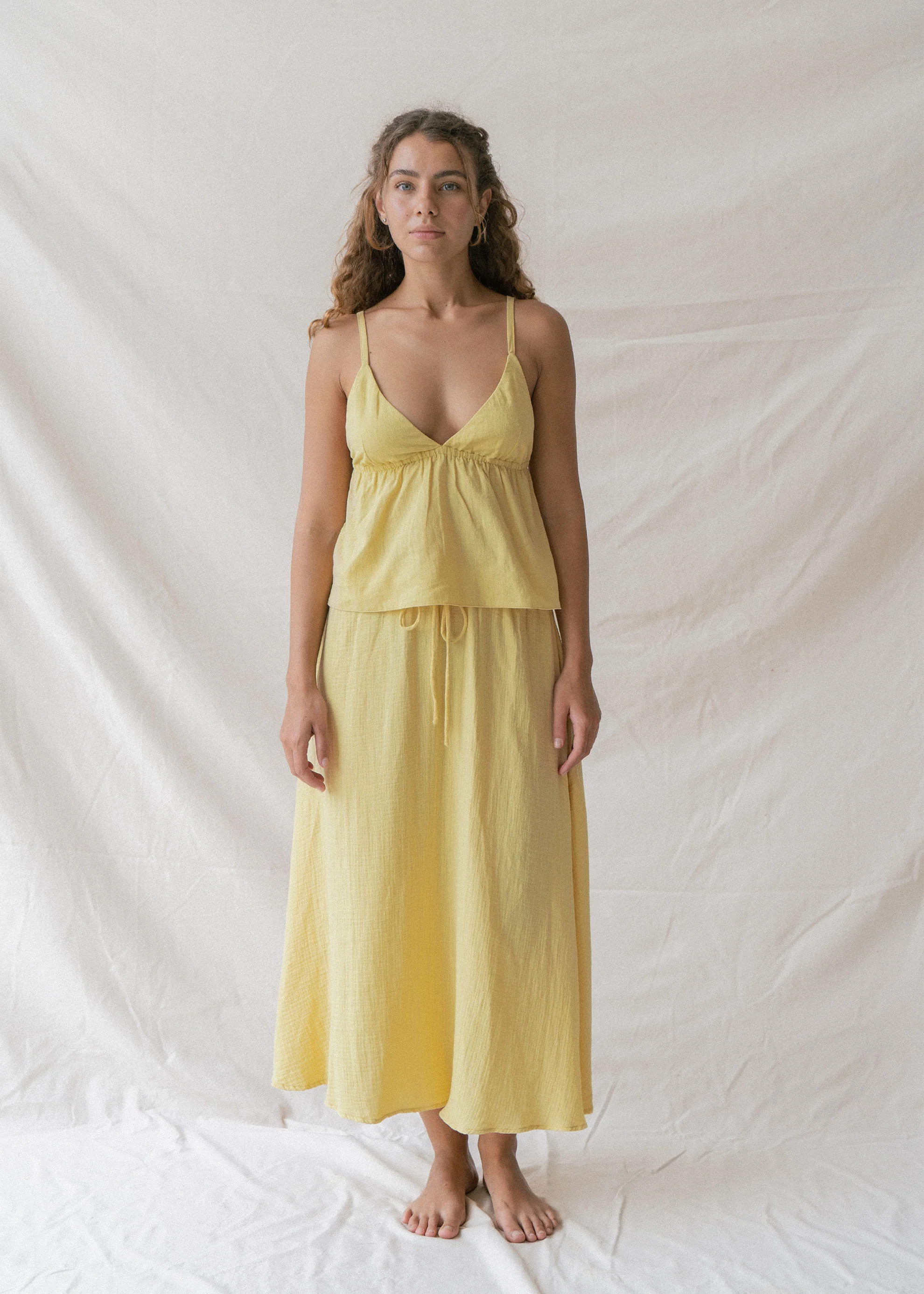 Float through your day in our Mökki Skirt in Sunlight, a pastel yellow that effortlessly captures the essence of summer. Hand-dyed by local artisans, each skirt carries a unique story of craftsmanship and style, ensuring that you wear a piece as one-of-a-kind as you are. This timeless skirt is our favourite for accompanying you from soft mornings to magical evenings.
